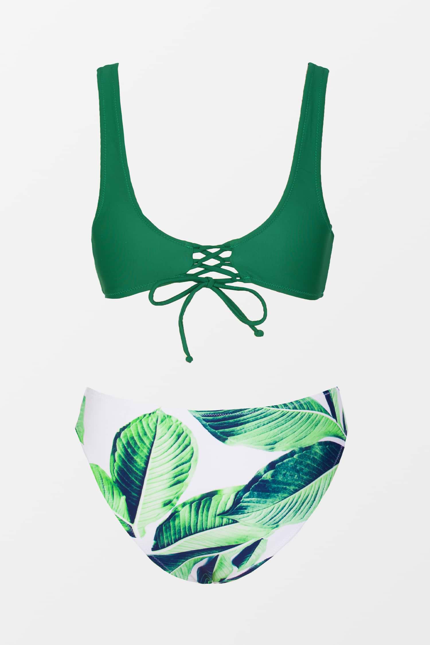HomeBikini Verde Sólido con Estampado de Hojas