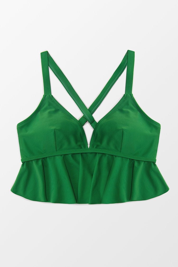 Top de bikini Zoe con volates y cruzado para tallas grandes
